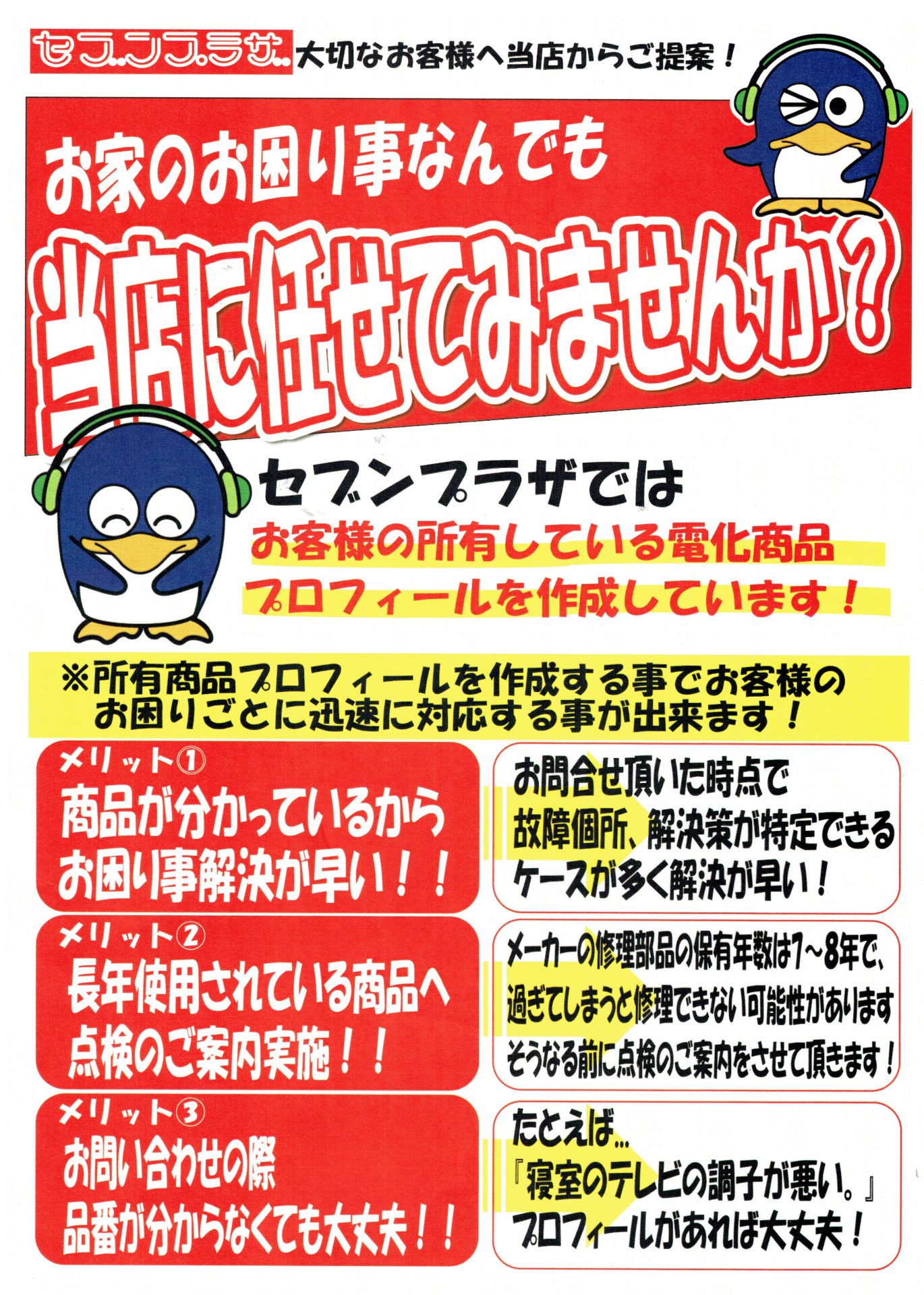 セブンプラザではお客様の所有している電化商品のプロフィールを作成しています。